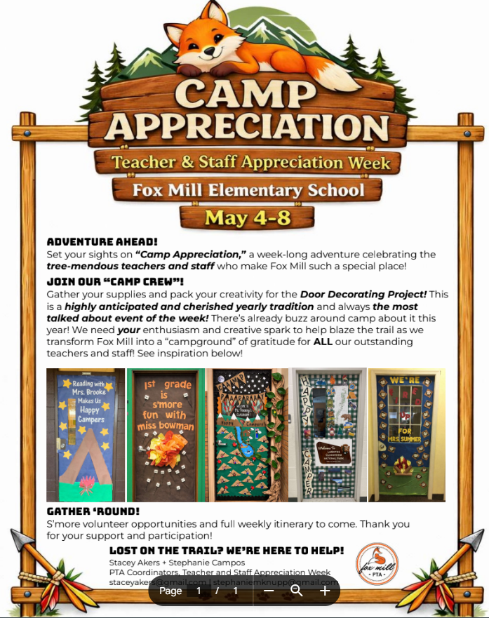 This year’s theme, “Camp Appreciation,” is inspired by the great outdoors, so let your creativity run free as we celebrate all our tree-mendous teachers and staff!!