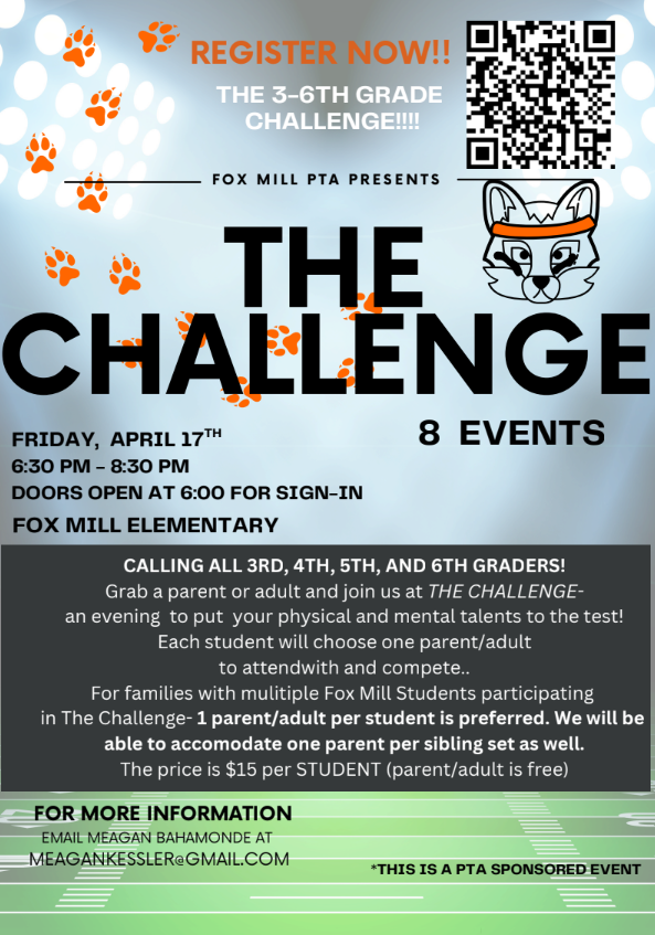 The 3-6 Challenge is a PTA event that focuses on good old family fun and games. It is open to all 3rd graders, 4th graders, 5th graders, and 6th graders. Each student brings one adult. Pairs rotate with their group through eight 10-minute stations and participate in games and fun activities.